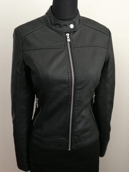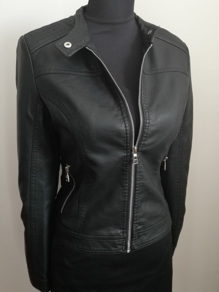 Dámska koženka obľúbeného strihu, ktorú vďaka neutrálnemu a nadčasovému prevedeniu budete s obľubou nosiť k outfitom rozmanitých štýlov. Jemne prešívané prvky na ramenách a strieborné zipsy.  |